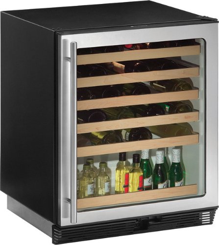 U Line Stainless Steel Built In Wine Cooler 1075WCS13. Lock models must be ordered right- or left-hand hinged. Maintains wine at their proper serving temperature. Top - Approximately 55 Degrees F (Red). Middle - Approximately 50 Degrees F (White). Bottom - Approximately 45 Degrees F (Sparkling). Safely stores one, two or three types of wine. Allow for easy access to all wine bottles, especially those located in the rear of the unit. Wood can be stained or replaced with a solid surface material to match surrounding décor. Allows for temperature adjustability. Permits elegant bottle presentation when door is closed. The light will automatically shut off after four hours. Automatically illuminates when the door is opened. Recessed so as not to interfere with access to wine. Protects your wine collection from potentially harmful UV light rays. Provide a more precise undercounter fit. Provides a custom look. No additional clearance around sides, top or rear of unit for ventilation. Do not obstruct front grille. Offers a bold commercial-style stainless steel handle. Stainless steel framed glass door. Wine Bottle Capacity: 48 Bottles (.75L). Temperature Zones: 3. Defrost: Automatic. Control: Dial. Wine Racks: 5 Slide-Out. Solid Beech-Trimmed Wine Racks: Yes. Glass Door: LowE coated, argon gas filled thermopane. Interior On/Off Light: Yes. Field Reversible Door: No. Door Lock: Yes. Run Amps: 2.4. Maximum Start Amps: 9.8. Electrical Requirements: 110/115V, 60Hz, 15A. Installation Requirement: MUST Add 1/4 to Overall Width For Proper Installation. Width: 23 15/16. Depth with Handle: 25 3/16. Depth with Door: 23 5/16. Height: 34 1/8 to 35 1/8. Grille Height: 3 9/16. Approx. Shipping Weight: 134 Lbs.. Wine Captain - Model 1075WC Bringing the convenience of a personal wine cellar to any location in the home, a U-Line Wine Captain is the perfect companion for entertaining - or just relaxing. U-Line's unique triple temperature zone design adds versatility in preservation, housing